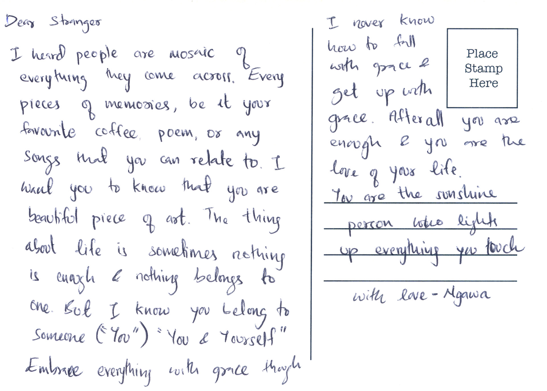 At the beginning, I was hesitant to put out Dear Dandelion as it’s a personal and vulnerable work to me. But I am curious to see if by extending my project to others, we can find common thread in each other’s stories and forge a universal visual language on grief and loss.